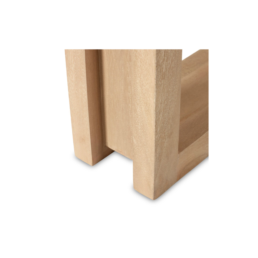 A stylish bedroom featuring a bed with white linens and colorful pillows, a dark wood dresser with a white vase and flowers, a gold and black patterned nightstand, a modern lamp, a navy blue armchair with a glass of wine and an open book, and a window with white curtains on the left.