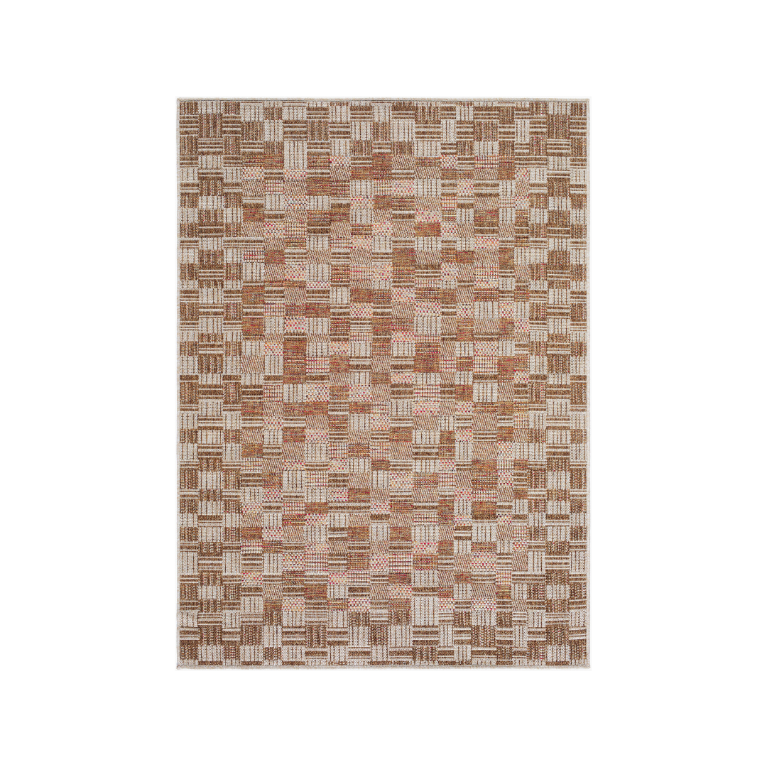 This woven indoor/outdoor rug features a warm, textured checkerboard pattern in natural tones, adding depth and dimension to any space. Made with durable, weather-resistant materials, it’s perfect for patios, entryways, or cozy corners inside the home.